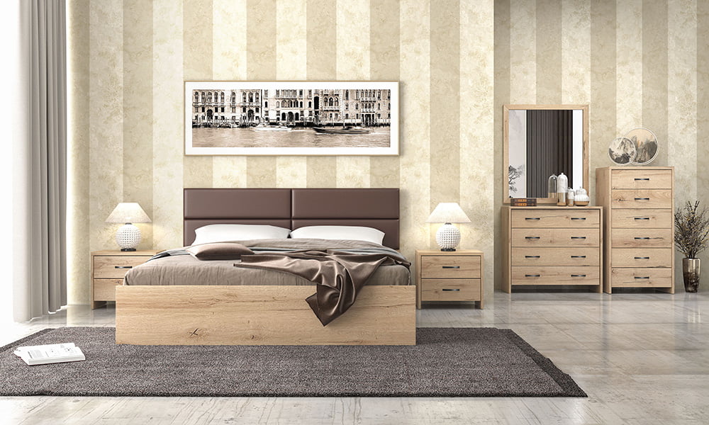 Κρεβάτι Ν6 είναι ένα μοντέρνο κρεβάτι ελληνικής κατασκευής. Σε αυτό το κρεβάτι έχετε την επιλογή δύο διαστάσεων 160χ200 και 150χ200. Το σχέδιο του κεφαλαριού είναι τέσσερα ορθογώνια σχήματα που δημιουργούνται από εσοχές.