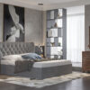 Kρεβάτι Ν86 ένα ποιοτικό κρεβάτι ελληνικής κατασκευής κατασκευασμένο από ξύλο MDF και αφρώδη υλικά στο εσωτερικό και με επένδυση υφάσματος εξωτερικά και μοναδικής σχεδίασης κεφαλάρι που παντρέυει το κλασικό καπιτονέ σχέδιο με μία πιο μοντέρνα εκδοχή του με επέκταση του κεφαλαριού δημιουργώντας εντυπωσιακά πλαινά αυτιά (δεξιά -αριστερά).