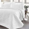 H Beauty Home θέλει να βρίσκεται δίπλα σας σε κάθε στιγμή της ζωής σας. Σας παρουσιάζουμε την νέα συλλογή μας σε νυφικά σετ ώστε να δημιουργήσετε ένα εντυπωσιακό νυφικό κρεβάτι που θα αποτελέσει το κέντρο της προσοχής στο υπνοδωμάτιο σας την ομορφότερη μέρα της ζωής σας. Το σετ νυφικού κρεβατιού προσφέρει όχι μόνο λειτουργικότητα αλλά αποτελεί την ιδανική επιλογή για να δώσετε μια νότα πολυτέλειας,κομψότητας και ρομαντισμού στον χώρο σας. Το νυφικό σετ σε βαλίτσα περιλαμβάνει : 1 βαλίτσα λευκή που περιέχει: 1 τεμάχιο κουβερλί σε διάσταση 230×250 το οποίο θα αγκαλιάσει το κρεβάτι σας με μια αίσθηση άνεσης και ζεστασιάς , το σετ συμπληρώνει 1 τεμάχιο πανωσέντονο σε διάσταση 240×260, 1 τεμάχιο κατωσέντονο σε διάσταση 240×260 και 4 τεμάχια μαξιλαροθήκες σε διάσταση 50×70 είναι σχεδιασμένα για να εφαρμόζουν τέλεια προσφέρoντας μια αίσθηση απαλότητας και άνεσης κατά τη διάρκεια του ύπνου. Είναι κατασκευασμένο από microfiber κεντημένο επιλεγμένο με προσοχή για την υψηλή ποιότητα και την αντοχή του, ενώ η υφή του είναι μαλακή και απαλή στην αφή. Είτε πρόκειται για μια κλασική επιλογή είτε για κάτι πιο μοντέρνο και δυναμικό, αυτό το σετ θα σας χαρίσει μια αίσθηση πολυτέλειας και άνεσης κάθε φορά που θα το χρησιμοποιείτε. Προσθέστε οποιαδήποτε τελευταία διακοσμητικά στοιχεία, όπως πετσέτες ή ρόμπες λουτρού, που θα συμπληρώσουν το στυλ και την αισθητική του νυφικού κρεβατιού σας