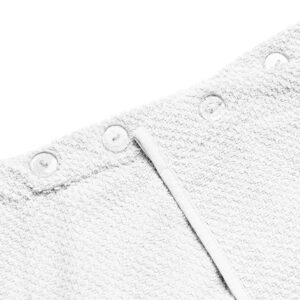 Το ύφασμα από 100% combed cotton προσφέρει απαλή αίσθηση και απορροφητικότητα, ενώ το λάστιχο στην πλάτη εξασφαλίζει ότι η πετσέτα θα παραμείνει σταθερή και θα προσφέρει άνεση κατά τη χρήση. Τα κουμπιά προσθέτουν ένα στοιχείο πρακτικότητας, επιτρέποντας να τυλιχθείτε γρήγορα και εύκολα στην πετσέτα και να τη διατηρήσετε στη θέση της.