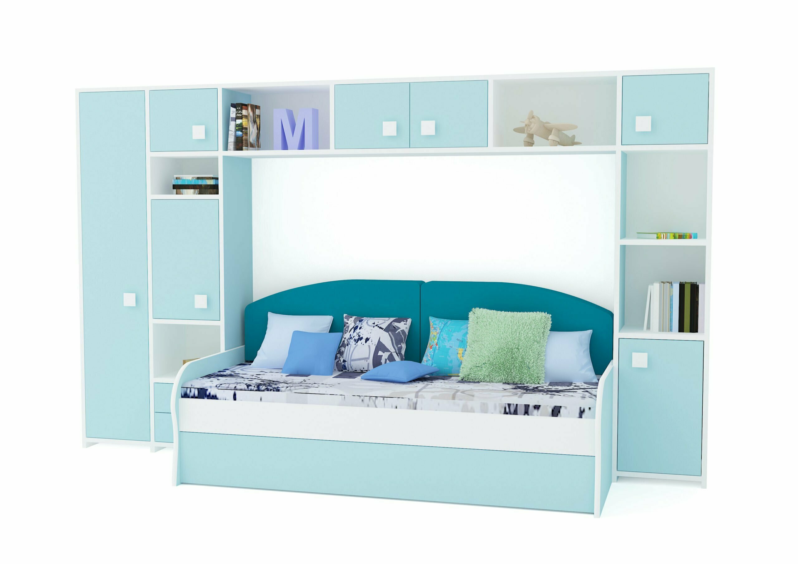 Σύνθεση τοίχου περιμετρικά του καναπέ Roc μία σύνθεση γεμάτη αποθηκευτικούς χώρους με κλειστά και ανοιχτά ράφια με ντουλάπια.