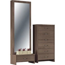 Συρταριέρα κολώνα με 6 συρτάρια με διαστάσεις Φ55 χ Β43 χ Υ112 και έπιπλο καθρέφτη με ένα συρτάρι και κρυφό αποθηκευτικό χώρο με το άνοιγμα του καθρέφτη διαστάσεων Φ55 χ Β43 χ Υ178. Σε διάφορους χρωματισμούς μελί, σταχτί , μόκα, δρυς σκούρο , λάττε και καρυδί .